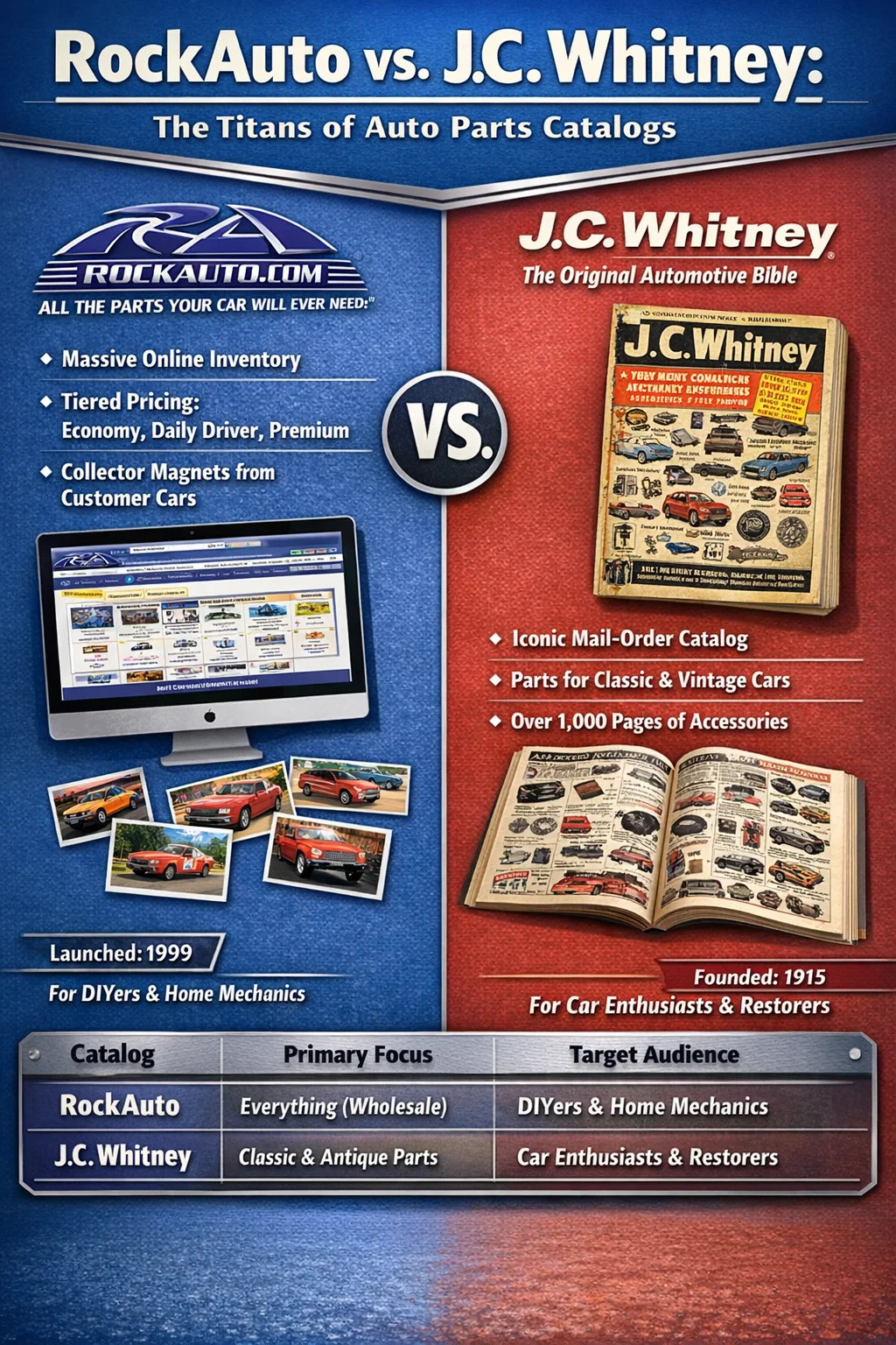 Wenn man nach dem berühmtesten Autoteilekatalog fragt, dominieren zwei Namen das Gespräch: RockAuto für das digitale Zeitalter und J.C. Whitney für historische Bedeutung. RockAuto ist zum modernen Goldstandard geworden und bietet eine umfassende Online-Datenbank, die fast alles abdeckt Automobilteil hergestellt in den letzten Jahrzehnten. Für diejenigen, die sich an die Ära der Versandkataloge in Papierform erinnern: J.C. Whitney war der unbestrittene König, bekannt als die „Bibel“ der Automobil-DIY-Welt.